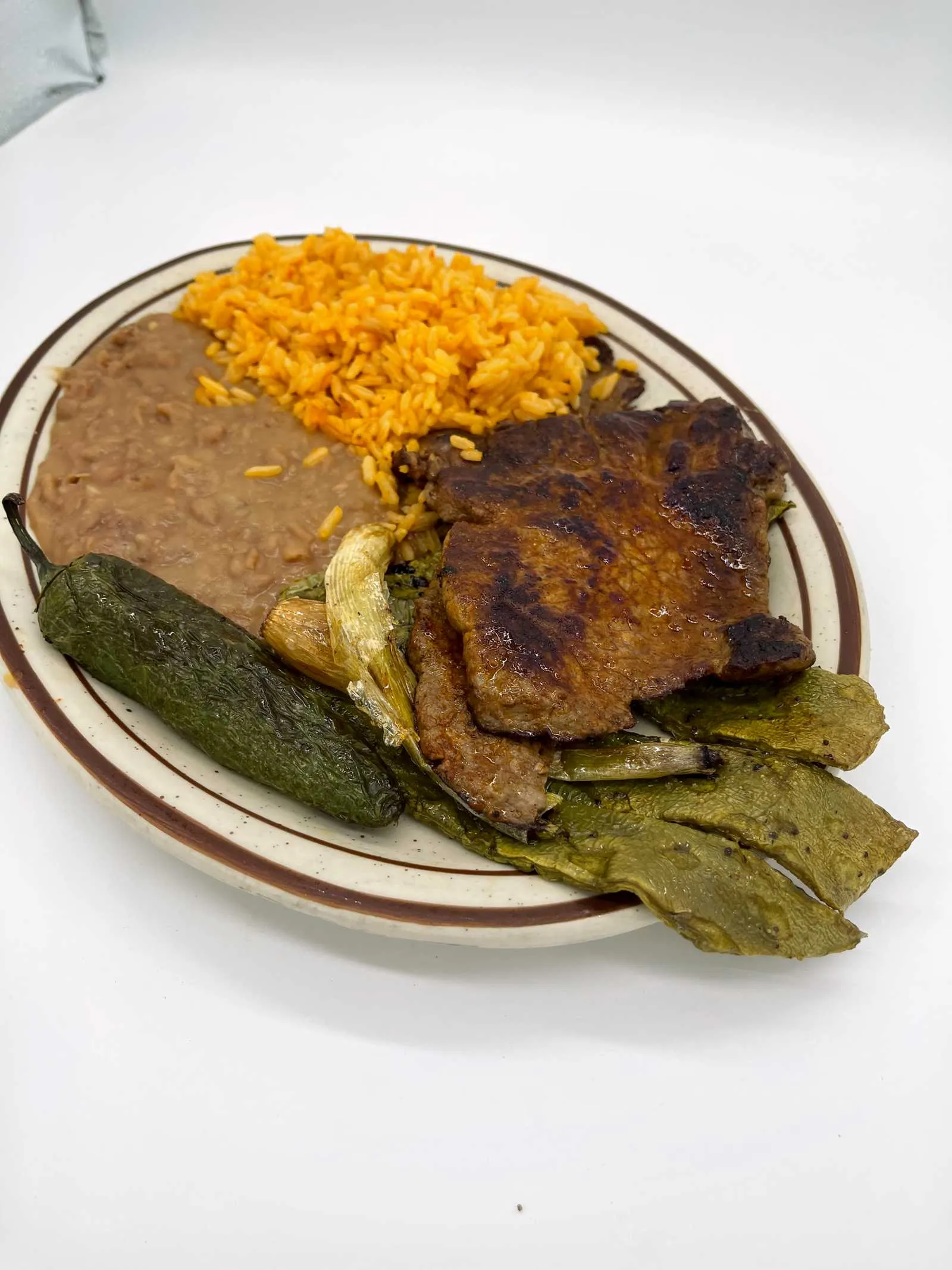 Fried Cactus, Fried Onion, Chile Toreado And 3 Tortillas.