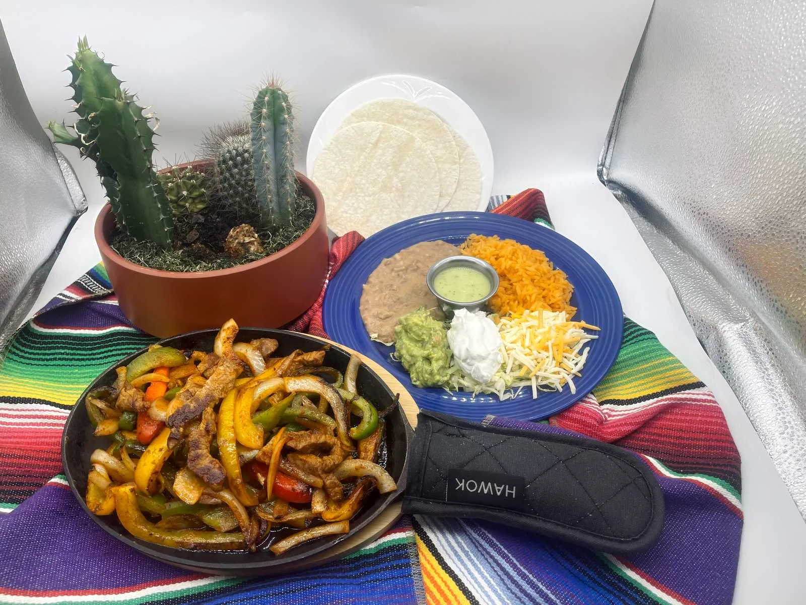 Comes With Bell Peppers, Onions, Rice, Beans, Cheese, Guacamole, Sour Cream And 3 Tortillas.