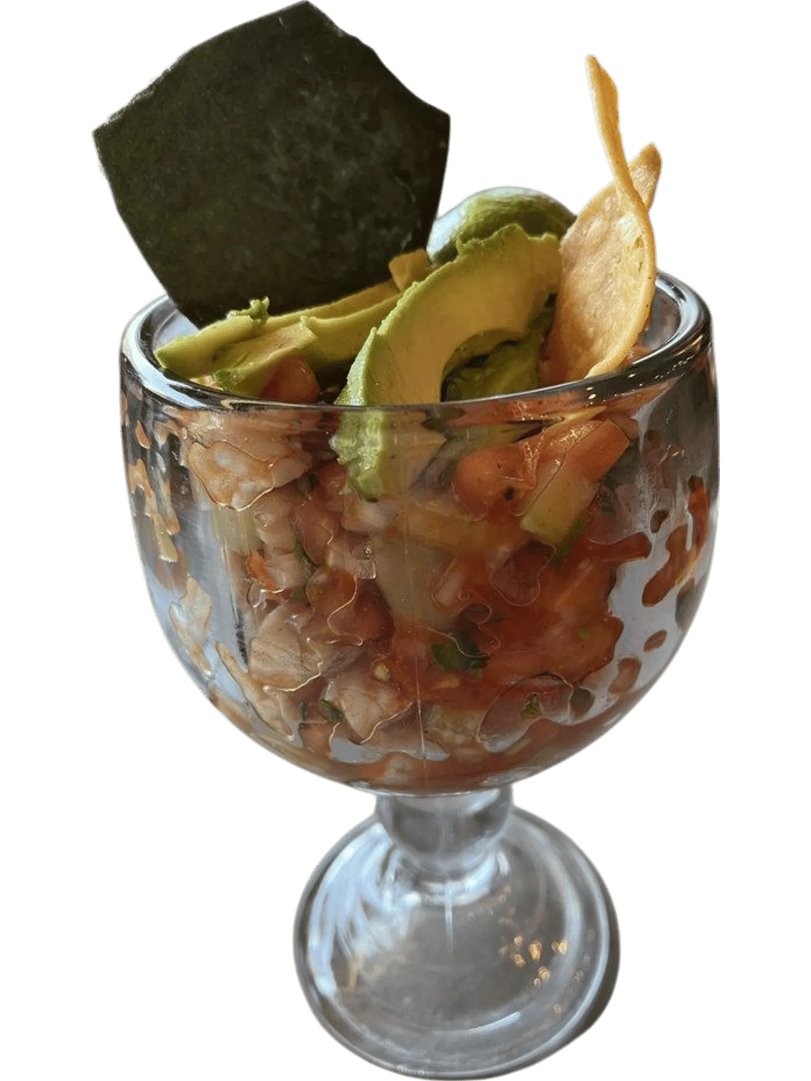 Shrimp Marinated In Lime, Mixed With Cucumber, Cilantro, Onion, Tomato, Avocado, Jalapeno, Ketchup And Tapatio